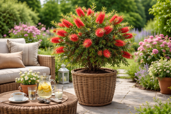 В результате получается удобный формат «два в одном»: зимой красивотычинник украшает интерьер, а летом становится ярким акцентом сада. При правильном уходе в кадке он спокойно живёт 20–30 лет, ежегодно наращивает крону и цветёт всё обильнее.