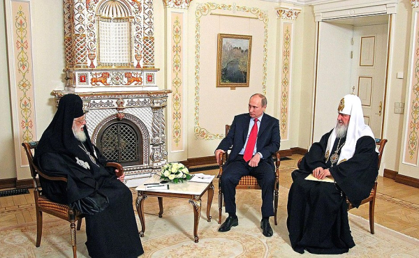 Илия II, президент РФ Владимир Путин и патриарх Кирилл