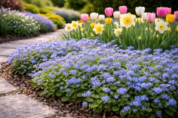 Незабудка — один из самых нежных весенних цветов. Её маленькие голубые цветки появляются ранней весной и создают на клумбах лёгкое голубое «облако». Несмотря на скромный размер, этот цветок очень любят садоводы за неприхотливость, холодостойкость и способность быстро разрастаться.